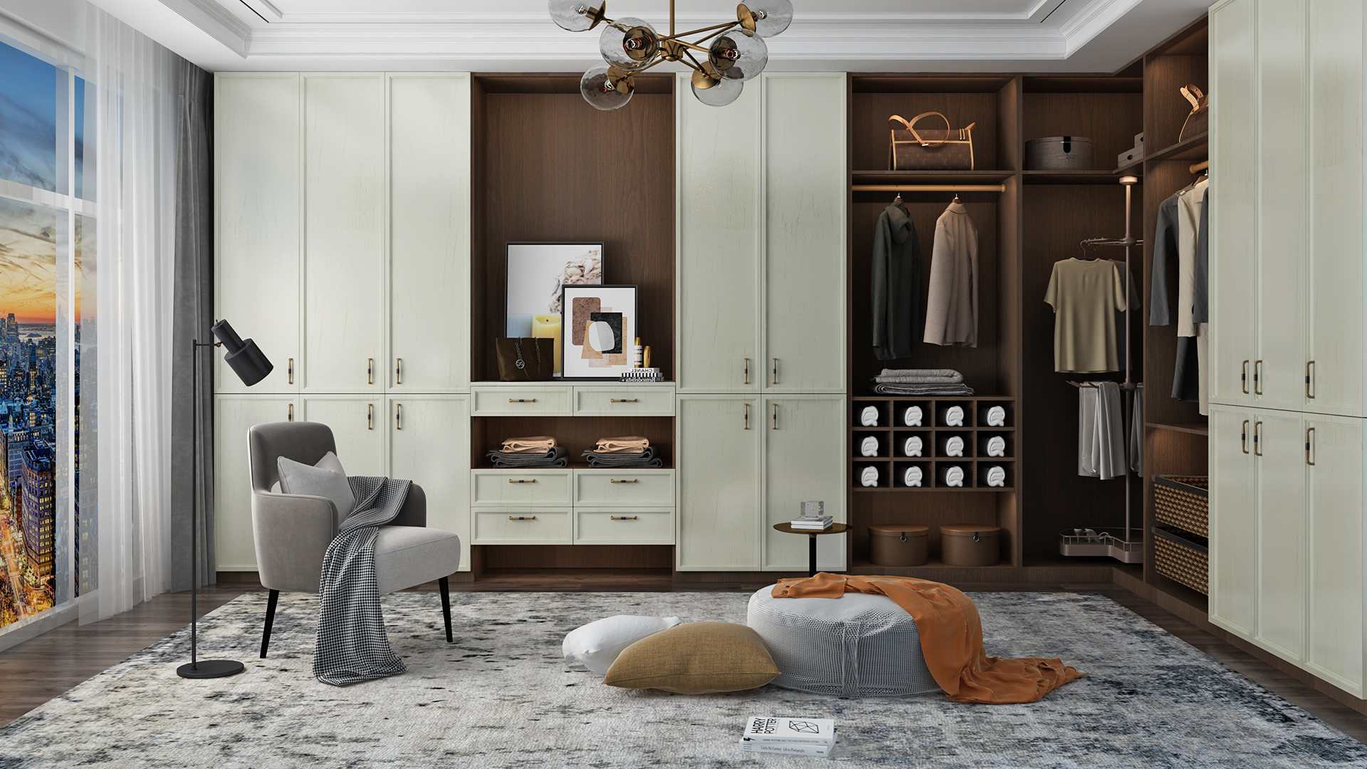 在定制家具全屋定制设计中,平衡和谐的比例和比例是实现大方美观的关键。家具之间、家具与空间之间的比例要协调一致,避免过大或过小的比例造成的不协调感。同时,注意家具与空间的相互关系,避免家具过于拥挤或空旷,保持平衡和谐的整体效果。