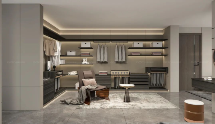 衣帽间设计和家居设计的理念是一样的,最重要的是空间规划。通过对空间进行组织变化,营造一个和谐的室内环境,从而达到视觉功能和心理功能的协调。
